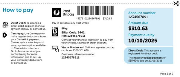 We’ve extended the due date for this first bill run to 10 October 2025. We won’t charge penalty interest or send overdue accounts to debt collection. If you need more time or support, please call us — we can help.